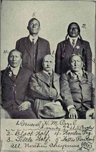 The Indians when asked to surrender their arms and ponies refused, and formed in battle line in semicircular formation, the women and children in the center. Iron Shirt exhorting them to die fighting for their rights, telling them that they had been lied to long enough, during this time had one gun gone off, it would have been the commencement of a bloody massacre of women and children. All the women and children that could crowd into Lieutenant Creel’s two tents, thinking that when the firing commenced they would be immune. Until eleven o’clock the Indians maintained a bold and relenting attitude, their guns in hand, they stood immovable not yielding one inch; during this tense interval when any moment one shot would have precipitated a bloody fight, Lieutenant Creel remained with the Indians in their midst, walking quietly up and down their line urging carefulness and pleading for the lives of their[Pg 318] women and children until they finally surrendered. The Northern Cheyennes as Little Wolf said at Washington in the winter of 1913, had made him an adopted member of their tribe, and the history of the Cheyenne nation or people would not be complete without his name in it, that no white man, an officer in the gallant Seventh Cavalry had when death was near, stood with the Indians in their midst, and on their side as he had done, every other white man had left the Indian camp including William Roland, a half-breed Cheyenne interpreter for these Indians, saying there was going to be a massacre.