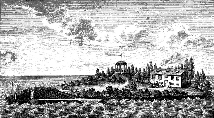 Das Titelkupfer stellt eine von Wallfischen gezogene Reiseinsel dar, wovon Seite 294 die nähere Beschreibung.