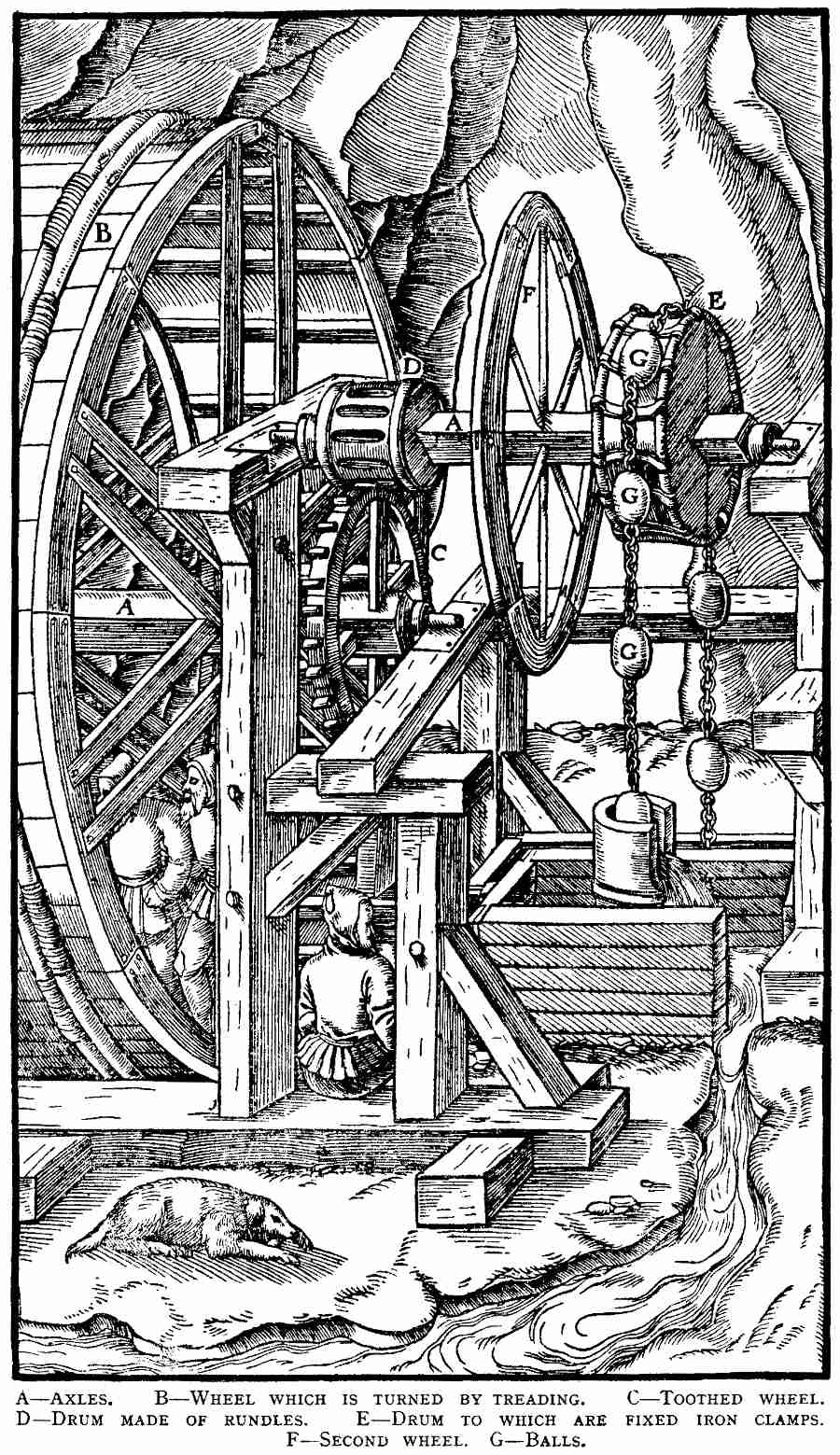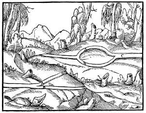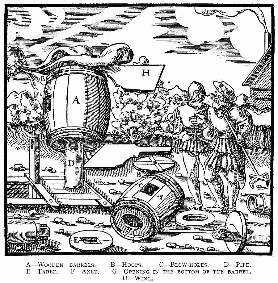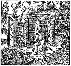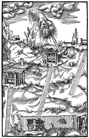 In addition to these, Leupold,[21] Schmid,[22] and others mention an octavo edition, without illustrations, Schweinfurt, 1607. We have not been able to find a copy of this edition, and are not certain of its existence. The same catalogues also mention an octavo edition of De Re Metallica, Wittenberg, 1612 or 1614, with notes by Joanne Sigfrido; but we believe this to be a confusion with Agricola's subsidiary works, which were published at this time and place, with such notes.