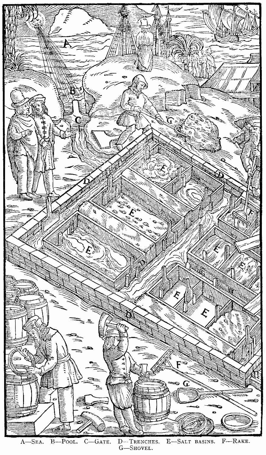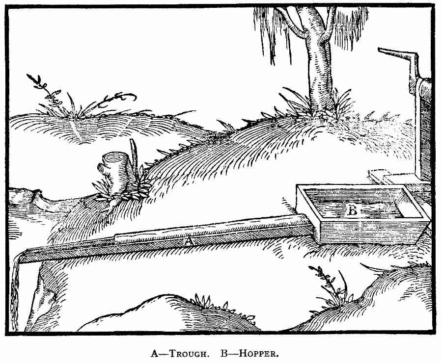 So far as we know, De Re Metallica was never actually published in other than Latin, German, and Italian. However, a portion of the accounts of the firm of Froben were published in 1881[24], and therein is an entry under March, 1560, of a sum to one Leodigaris Grymaldo for some other work, and also for "correction of Agricola's De Re Metallica in French." This may of course, be an error for the Italian edition, which appeared a little later. There is also mention[25] that a manuscript of De Re Metallica in Spanish was [Pg xvii]seen in the library of the town of Bejar. An interesting note appears in the glossary given by Sir John Pettus in his translation of Lazarus Erckern's work on assaying. He says[26] "but I cannot enlarge my observations upon any more words, because the printer calls for what I did write of a metallick dictionary, after I first proposed the printing of Erckern, but intending within the compass of a year to publish Georgius Agricola, De Re Metallica (being fully translated) in English, and also to add a dictionary to it, I shall reserve my remaining essays (if what I have done hitherto be approved) till then, and so I proceed in the dictionary." The translation was never published and extensive inquiry in various libraries and among the family of Pettus has failed to yield any trace of the manuscript.
