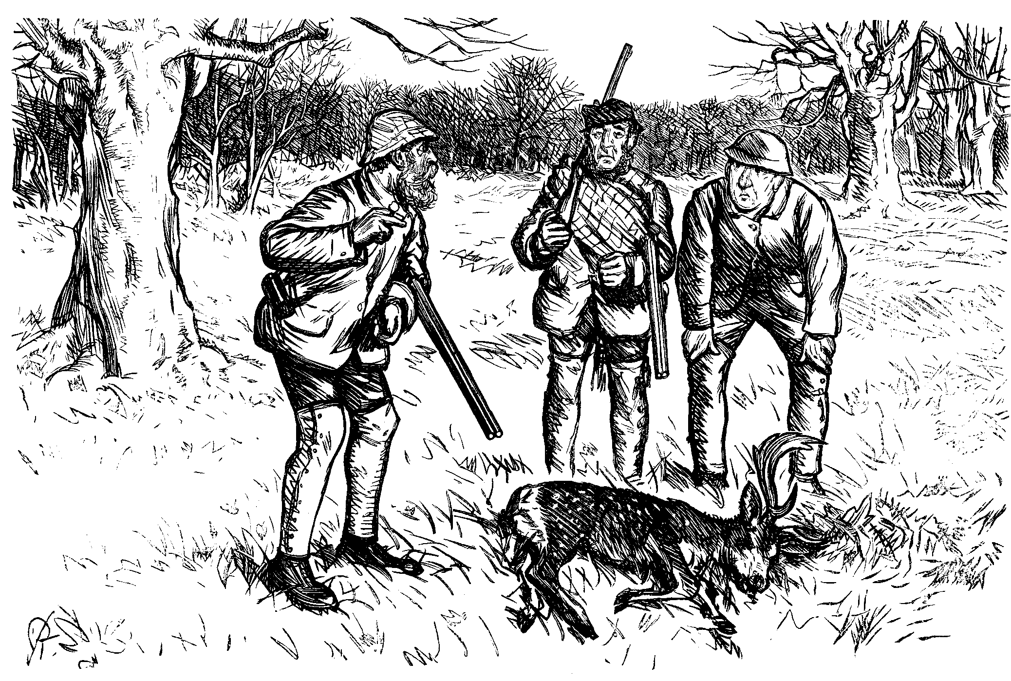 Noble Lord (whose Rifle has brought to a scarcely untimely end a very consumptive-looking Fallow Deer). "Tut—t, t, t, t, Tut! O, I say, Stubbs!—(to his Keeper)—you shouldn't have let me Kill such a poor, little, sickly, scraggy Thing as this, you know! It positively isn't fit for Human Food! Ah! look here, now! I'll Tell you what. You and McFarlin may have this Buck between you!!!"