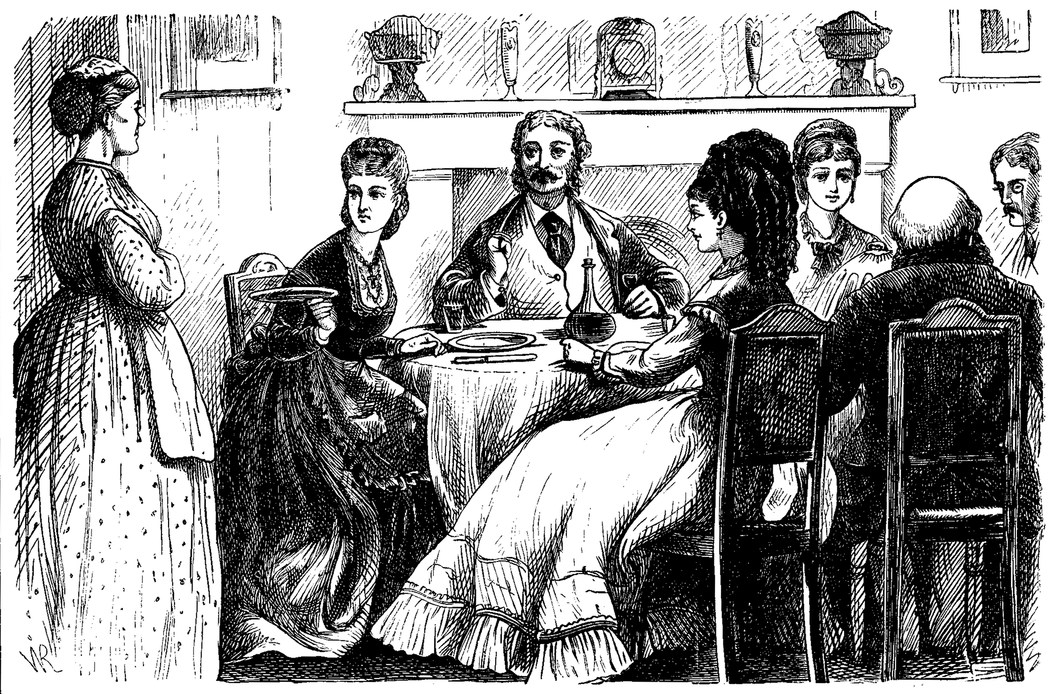 Tuesday, May 12.—Card from Madge Bassingham, R.A., for her Inaugural Praelection, as Pigmentary Professor at the Royal Academy. Could not go, as I was engaged on a Committee at the Saloon—Metropolis Extension, Brighton Annexation Bill. Dined with Mrs. Abraham Skrooley, M.P. Woman's party. The Constantia exquisite. Discussed over our cigarettes the arrangements for the approximating Women's Cosmopolitan Congress. Alfred and one or two other Men came in the evening.