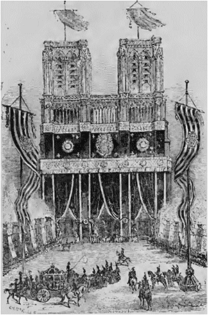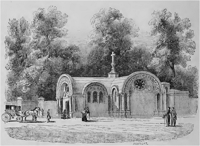 Tous les détails des funérailles, après une année d'intervalle, sont encore présents à la mémoire. Nous voyons l'immense cathédrale voilée de noir; le catafalque dressé entre les deux nefs latérales sous un baldaquin de velours doublé d'hermine; les cinq cents cierges flamboyants; les cariatides argentées, et la foule se succédant pendant quatre jours entiers, pour venir dire au prince royal un dernier adieu. La duchesse douairière d'Orléans avait fait construire, au château de Dreux, sur l'emplacement de l'église collégiale, une chapelle sépulcrale pour les princes des maisons de Toulouse et du Maine. C'est là que le duc d'Orléans repose, à côté de la princesse Marie, sa soeur. C'est là aussi qu'un service funèbre a été célébré, le 13, en présence de sa veuve et de ses parents désolés; mais, quoique son cercueil eût été placé dans les caveaux de Dreux, la reine a voulu qu'un monument consacrât le lieu où il a rendu le dernier soupir. La maison de M. Cordier a été achetée par la liste civile pour la Minime de 110,000 francs; elle a été démolie, et, il y a six mois, M. Fontaine et M. Lefranc, architectes-inspecteurs, ont jeté les fondements d'une chapelle qui vient d'être inaugurée le 11 juillet.