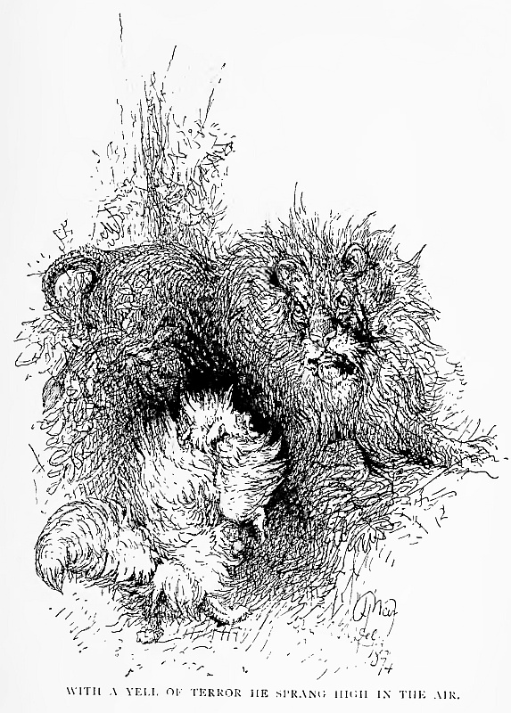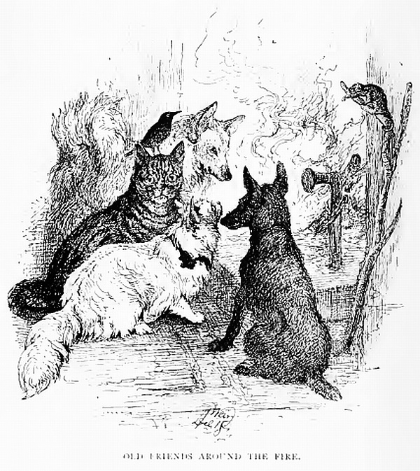 Shireen (purring louder than ever): “Oh, I daresay and, indeed, Cracker, some cats deserve to be killed. But I’m Shireen. Nobody ever kills me. What a nice good-natured face you have! Just let me rub my back against your chest. So—and—so! I’m sure we shall be tremendous friends, and you might do me a favour if you care to.”