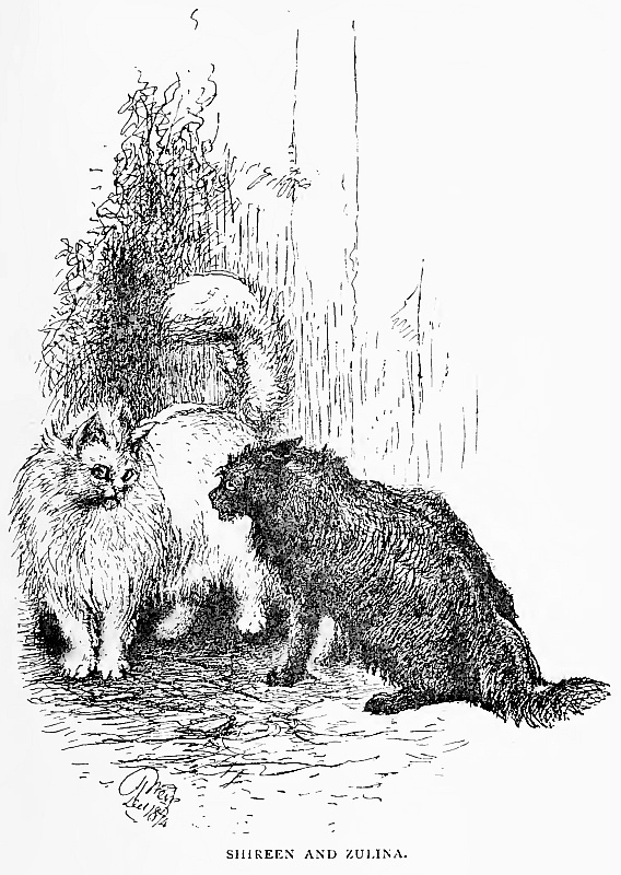 She was always welcome, and many a saucerful of creamy milk was put down to her on these occasions. Not that Shireen paid the visit for sake of being fed, for often she would not touch the milk-offering. But she had formed this wandering habit somehow. The fact is, Shireen, like her owner, the Colonel, was a very far-travelling cat, and cats, like old soldiers and old sailors who have been here and there in many lands, find it difficult to settle in one place or one home.