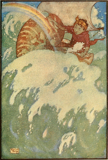 THE sea-fairy's name was Laughing Sapphire, and he lived in a nautilus-shell: the land-fairy was called Sweet-of-the-Mountain, and his home was a tuft of heather. One day Sweet-of-the-Mountain went for a stroll on the sea-shore, and there he met Laughing Sapphire, just at the edge of the ripples. It was then that the quarrel began.