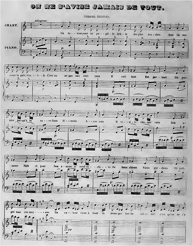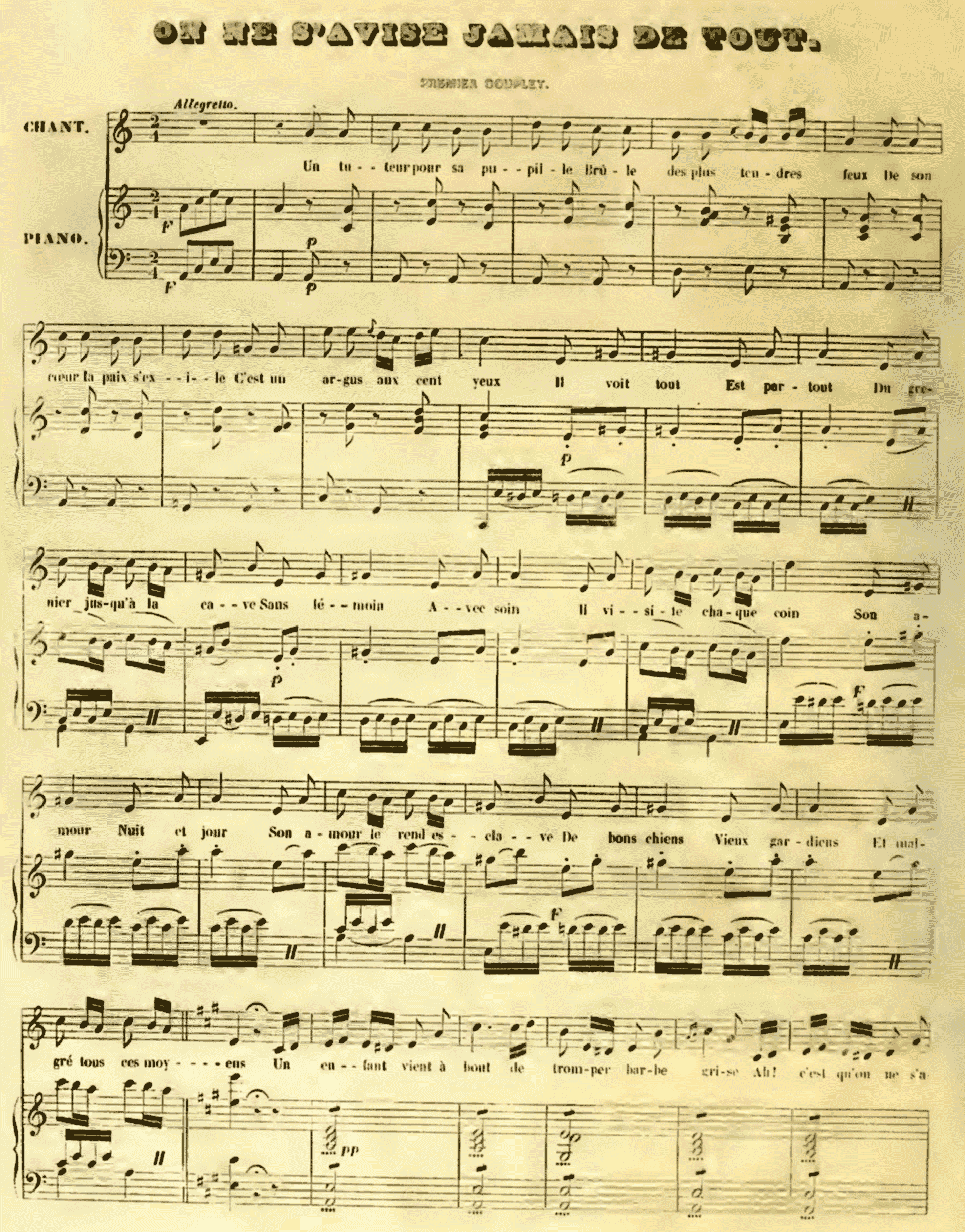 «Qu'y a-t-il donc? rumina le ministre à part lui; sans doute Sa Majesté est occupée à méditer quelque passage profond de ce livre précieux: une pensée philosophique ou politique, ou diplomatique...» Et cependant il allait toujours; «Chut! chut! chut!» dit le prince pour la troisième fois; et au même instant il ferma le livre avec violence; le ministre en tressaillit, et crut voir, dans cette vivacité, un signe de colère et une disgrâce.