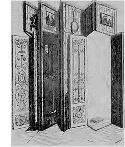 Il est, d'ailleurs facile d'appliquer sur les feuilles de ces paravents quelques légers châssis garnis de toiles et recouverts de papier peint, ou plutôt badigeonné par quelque artiste amateur, pour modifier et varier, autant qu'il peut être nécessaire, les décorations principales.