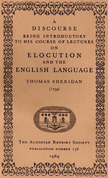 136. Thomas Sheridan, Discourse ... Being Introductory to His Course of Lectures on Elocution and the English Language (1759). Introduction by G. P. Mohrman.
