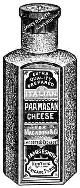 Procure from the Italian grocer a tomato paste called Pompodoro. Put into a saucepan an ounce of butter, whisk it as it melts and add two ounces of the tomato paste; keep stirring, and add a tablespoonful of Maggi Bouillon, a teaspoonful of J. P. Smith's Curry Powder, and a pint of water; stir to prevent burning and set on back of range until wanted. Boil half a pound of Barton Macaroni fifteen minutes, when done drain, put it on a hot platter and pour the sauce over it. Serve J. P. Smith's Italien Parmasan Cheese separately with it.