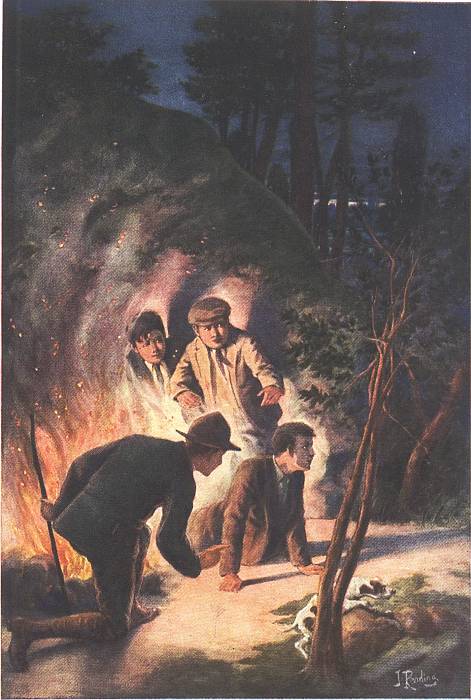 “I ought to tell you,” Scoutmaster Estey looked very grave, “that two of my scouts saw a man entering the shed,” pointing to what was now a mere smouldering heap of ashes, “just about an hour, or a little over, before the fire broke out. When they first caught sight of him he was on the piazza of the bungalow itself, and seemed trying to get into the house.”