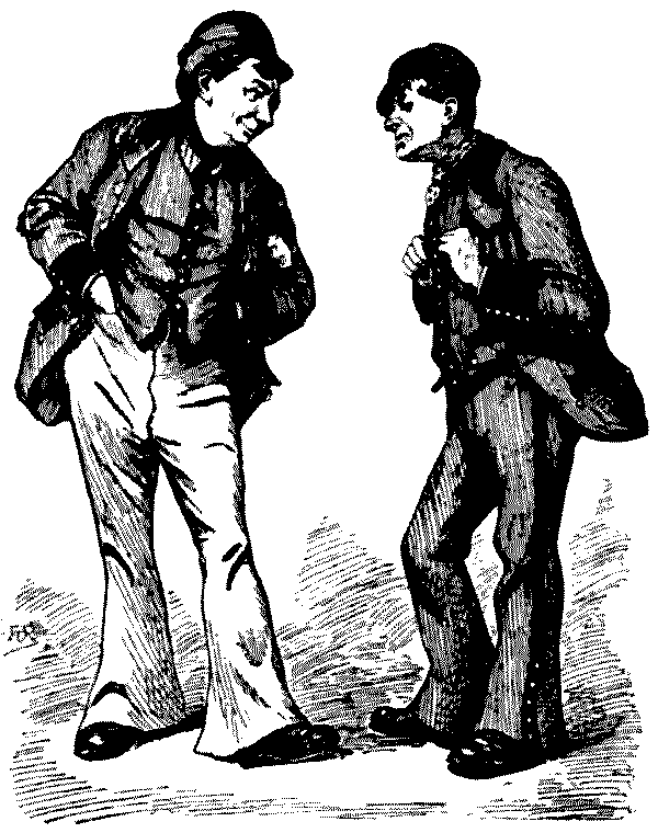 First Coster. "Say, Bill, 'ow d'yer like my new kickseys? Good fit, eh?"