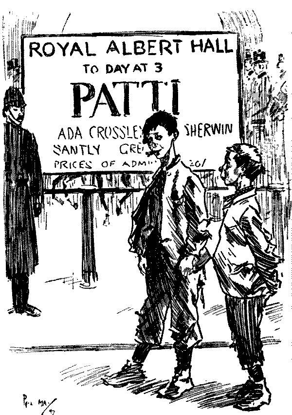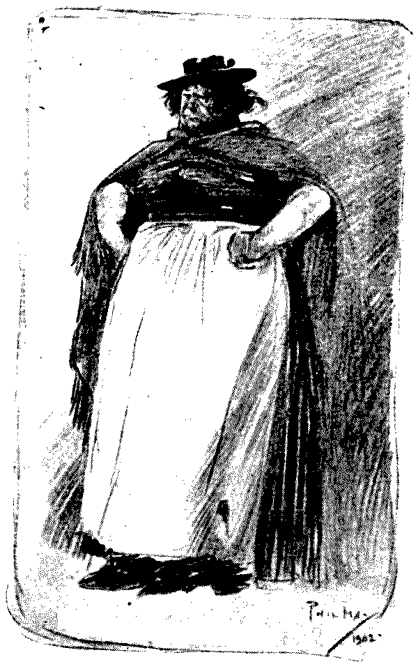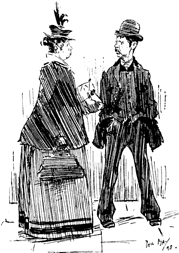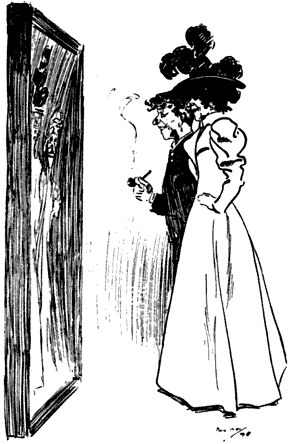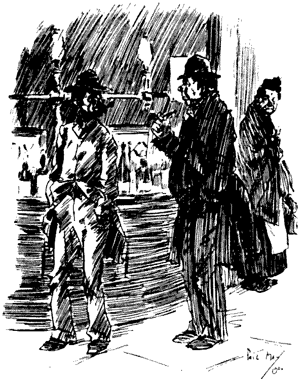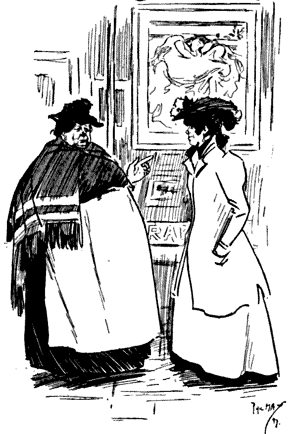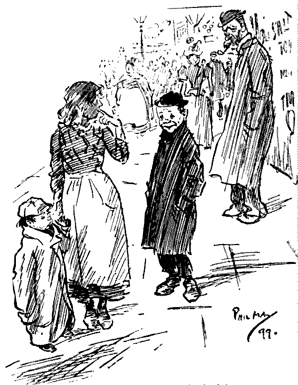 Take Phil May's pictures and jokes, and the difference is at once apparent. He was fully alive to the Cockney's deficiencies of manner and culture; now and then he quite genially and without the least touch of scorn or self-complacency makes fun of them; but he really gives you the Cockney character. Take, for instance, such a picture as his "Politics and Gallantry," his "I say, 'Arry, don't we look frights!" his "Informal Introduction"—(the self-consciousness of the girl's expression, and the blatant pride of the man's)—here, and in almost any of his drawings you turn to, you have the absolutely natural Cockney; his types are full of character and so true and free from condescension that not only are we moved irresistibly to laugh at them, but the Cockney himself would be the first to recognise their truth and to laugh joyously at them too. We may say pretty much the same of Charles Keene, of Mr. Raven-Hill, of Mr. Bernard Partridge, and of others of the "Punch" artists represented here, who illustrate the essential Cockney character, and do not go on the easy assumption that dropped H's and mispronounced words and aggressive vulgarity are the beginning and the end of it.