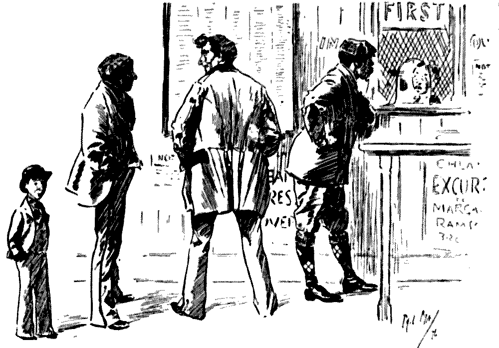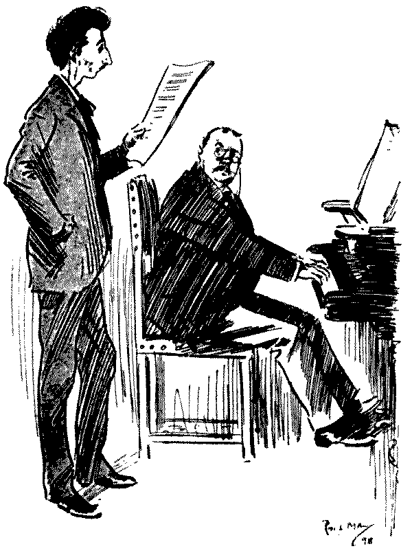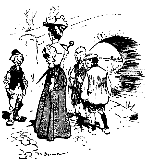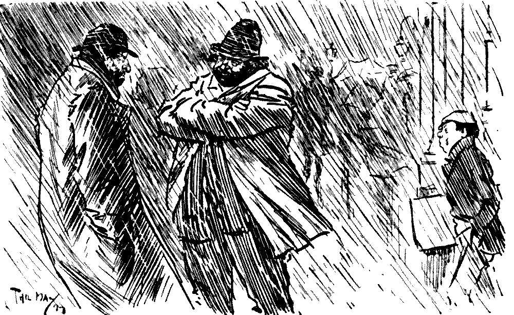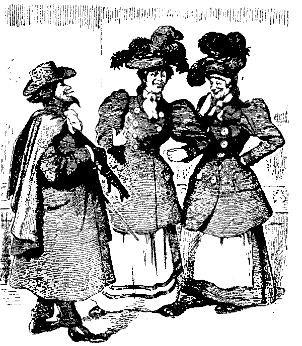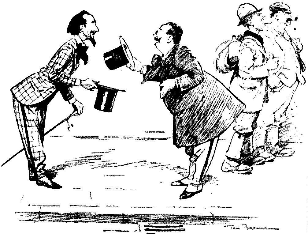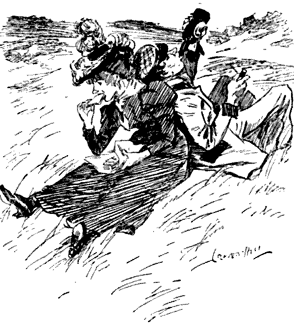Take Phil May's pictures and jokes, and the difference is at once apparent. He was fully alive to the Cockney's deficiencies of manner and culture; now and then he quite genially and without the least touch of scorn or self-complacency makes fun of them; but he really gives you the Cockney character. Take, for instance, such a picture as his "Politics and Gallantry," his "I say, 'Arry, don't we look frights!" his "Informal Introduction"—(the self-consciousness of the girl's expression, and the blatant pride of the man's)—here, and in almost any of his drawings you turn to, you have the absolutely natural Cockney; his types are full of character and so true and free from condescension that not only are we moved irresistibly to laugh at them, but the Cockney himself would be the first to recognise their truth and to laugh joyously at them too. We may say pretty much the same of Charles Keene, of Mr. Raven-Hill, of Mr. Bernard Partridge, and of others of the "Punch" artists represented here, who illustrate the essential Cockney character, and do not go on the easy assumption that dropped H's and mispronounced words and aggressive vulgarity are the beginning and the end of it.