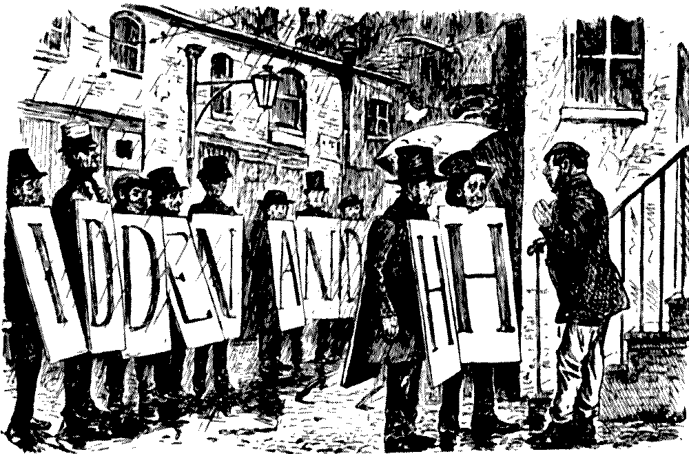 'Arry is at a hotel where the boarding system prevails, and sees the following notice posted on the walls—"Breakfast, 9 a.m."