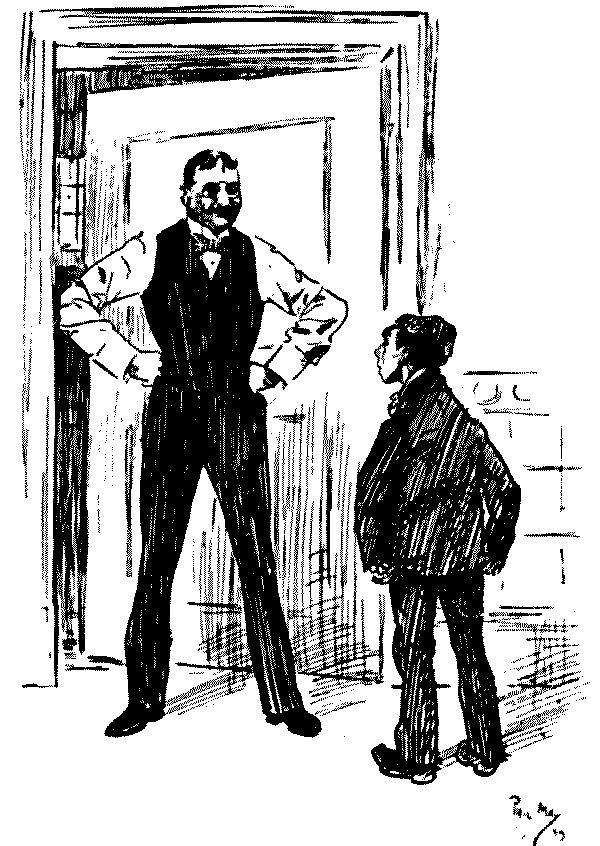 Little Binks (to unsteady party who had lurched heavily against him). "I beg your pardon, I'm sure, but I'm very short-sighted——"