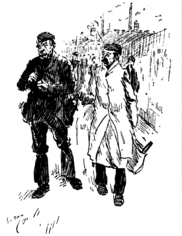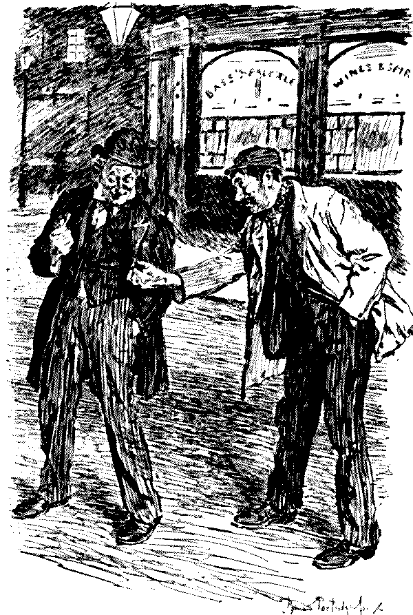 "Wot a silly question to arst! Why, if I 'ad twopence, wot 'ud I be doin' standin' outside a public 'ouse?"