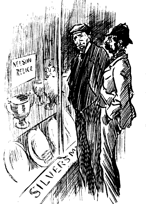 "I say, Bill, oo was this 'ere Nelson as everybody wos a talkin' about?" "Why, 'e was the chap as turned the French out of Trafalgar Square!"