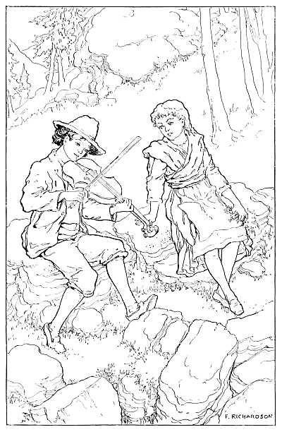 Sunday afternoons, when the weather was favorable, the father and son would go for a walk together. So striking was the likeness between them that no one could help noticing it, although in the bearded face of the man the sadness was less apparent. They seldom spoke, but sometimes the man would hum or whistle a tune, and then the boy would listen eagerly. It was easy to see that music was their chief pleasure. When they were kept in the house by bad weather, the father would play familiar airs on a mouth organ or on a whistle that he had made himself—perhaps on a comb or even on a leaf from a tree. Once he brought home a violin, which delighted the boy beyond measure. He watched the father intently as he played, and later tried to bring out the same notes himself. He must have succeeded fairly well, for the man laughed, and laying his own fingers[Pg 3] over the little ones, played several melodies from beginning to end.