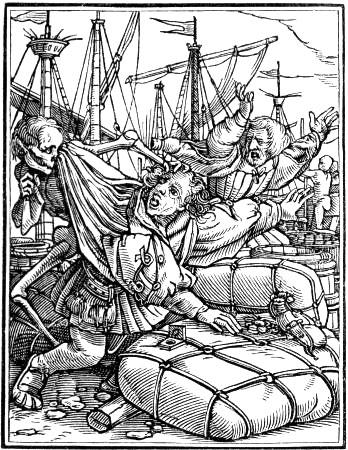 [116] That of 1557 has a frontispiece with Death pointing to his hour-glass when addressing a German soldier.
