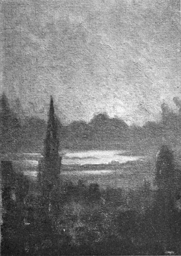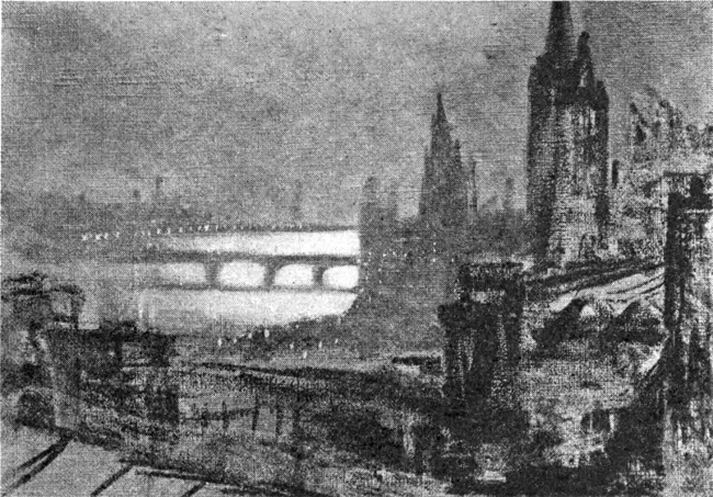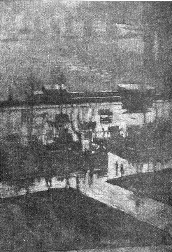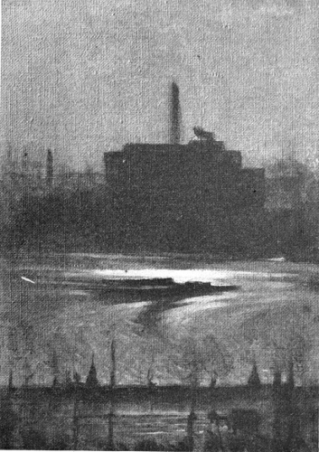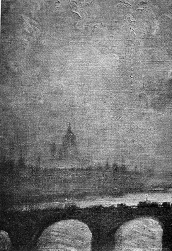Our finding Our House was the merest chance. J. and I had been hunting for it during weeks and months, from Chelsea to Blackfriars, when one day, on the way to take a train on the Underground, we saw the notice "To Let" in windows just where they ought to have been,—high above the Embankment and the River,—and we knew at a glance that we should be glad to spend the rest of our lives looking out of them. But something depended on the house we looked out from, and, while our train went without us, we hurried to discover it. We were in luck. It was all that we could have asked: as simple in architecture, its bricks as time-stained, as the courts of the Temple or Gray's Inn. The front door opened into a hall twisted with age, the roof supported by carved corbels, the upper part of another door at its far end filled with bull's-eye glass, while three flights of time-worn, white stone stairs led to the windows[Pg xii] with, behind them, a flat called Chambers, as if we were really in the Temple, and decorated by Adam, as if to bring Our House into harmony with the younger houses around it. For Our House it became on that very day, now years ago. Our House it has been ever since, and I hope we are only at the beginning of our adventures in it. Of some of the adventures that have already fallen to our share within Our House, I now venture to make the record, for no better reason perhaps than because at the time I found them both engrossing and amusing. The adventures out of Our Windows—adventures of cloud and smoke and sunshine and fog—J. has been from the beginning, and is still, recording, because certainly he finds them the most wonderful of all. If my text shows the price we pay for the beauty, the reproductions of his paintings, all made from Our Windows, show how well that beauty is worth the price.