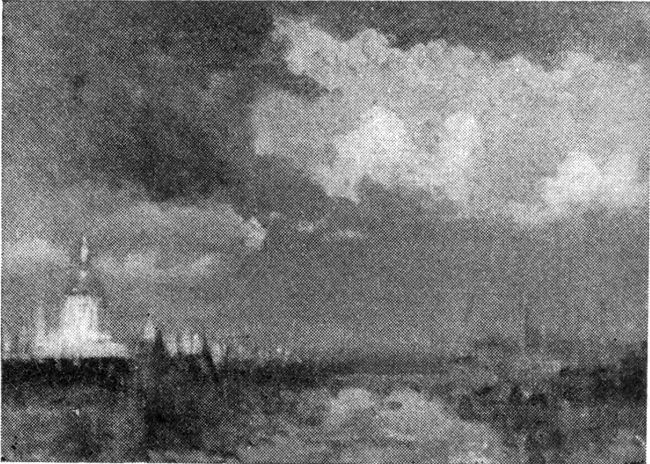 Etty was considerate and left a record of his "peace and happiness" in our chambers, but I have no proof that he appreciated their beauty. If he liked to walk on our leads in the evening and watch the sun set behind Westminster, he turned his back on the River at the loveliest hour of all. It was his habit as Academician to work like a student at night in the Royal Academy Schools, then in Trafalgar Square,—an admirable habit, but one that took him away just when he should have stayed. For when evening transformed the Thames and its banks into Whistler's "Fairyland" he, like Paul Revere, hung out a lantern from his studio window as a signal for the porter, with a big stick, to come and fetch him and protect him from the robbers of the Quarter, which had not then the best of reputations. Three generations of artists climbed our stairs to drink tea and eat muffins with Etty, but they showed the same ignorance of the Thames, all except Turner, who thought there was no finer scenery on any river in[Pg 294] Italy, and who wanted to capture our windows from Etty and make them his own, but who, possibly because he could not get them, never painted the Thames as it was and is. One other painter did actually capture the windows on the first floor, and, in the chambers that are now the Professor's, Stanfield manufactured his marines, and there too, they say, Humphry Davy made his safety lamp.