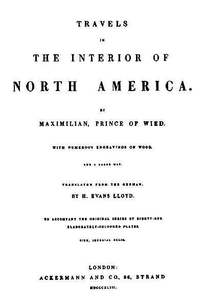 Travels in the Interior of North America. [Part I, being chapters i-xv of the London edition, 1843.] Maximilian, Prince of Wied. Translated from the German by Hannibal Evans Lloyd
