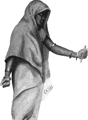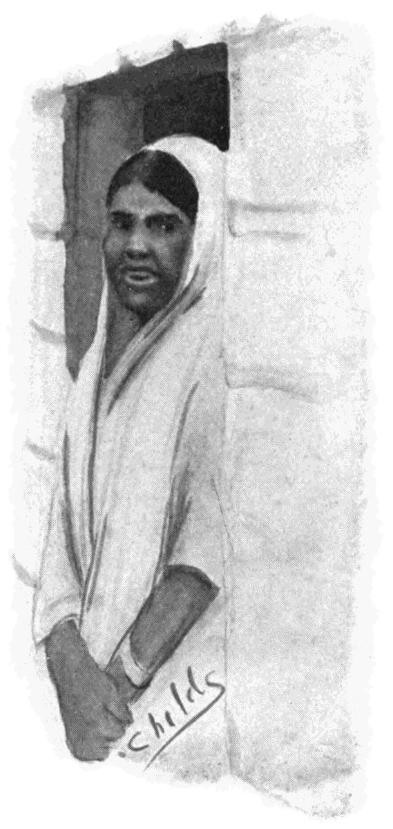Nor did the fakir heed the naked children who trotted across the pavement at the heels of their mothers, going to perform the sacred rites at the river and to secure their children from all harm by a dip in its holy waters. The old woman, too, who, scarcely able to hobble along, had placed a little brass bowl of the dirty, foul water beside him (for the piece of water near Kali's temple is only a slip of the Ganges itself and is, therefore, particularly filthy) received not her usual blessing in return and sank down near by to wait until the holy man should notice her.