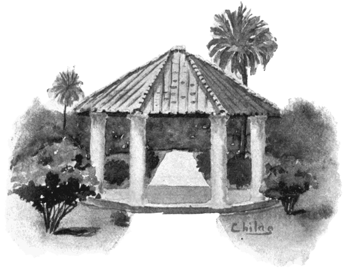 "Through the narrow passage between the houses that surround the temple of Kali I went in haste, drawing the bleating kid behind me by a rope. When I reached the little paved courtyard before that small but most sacred shrine where dwells the goddess herself I gave the animal over to the priest. Then I watched eagerly as he put the little creature's neck between the posts so that he could not get away, and, with but one blow of the knife, severed the head from the body, letting the blood pour forth. I hastened to catch the precious blood in my brass bowl. I daubed it upon my forehead. I touched the sacred slaughter posts with it. I gladly stepped where it had flowed upon the pavement and reddened my feet in the sacred flood. Then, as the priest carried the carcass away and other sacrificers thronged in, I took my bowl and, mounting the steps of the holy place where no unclean foot has ever trod, I saw the door of the shrine open and before me stood the Goddess Kali in her black majesty, with human skulls for a necklace and human arms for a girdle, her protruding tongue thirsting for blood. I poured my offering of blood upon her and with prayers and presentation of flowers and incense, I invoked her blessing upon me and declared to her a vow that for five years I would sit at the ghat day and night; that I would follow all the customs of the holy men:—wear no clothes but ashes, eat no food but fruit, drink no water but that of the sacred Ganges, and pray without ceasing; and that every anna that I received as alms I would give to her.