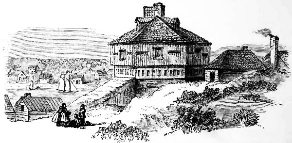 [338] The eminence on which the fort stood, also called Tomb Hill, jutted into the river, being united to the shore by a beach, and bordered by salt-marshes. It was steep and unassailable from any near vantage-ground. In 1647 the first fort was accidentally destroyed by fire.