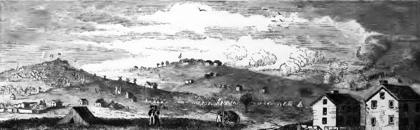 [301] It was the fortress of the British left wing. Two large and elegant country houses at its base, included within the lines, were occupied by the officers.