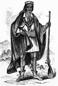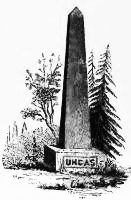 [330] Before the battle with the Narragansets, Uncas is said to have challenged Miantonimo to single combat, promising for himself and his nation to abide the result. Miantonimo refused. This chief, in his flight from the field, was overtaken by Mohegan warriors, who impeded him until Uncas could come up. When Uncas laid his hand on Miantonimo's shoulder, the latter sat down in token of submission, maintaining a sullen silence. Uncas is said to have eaten a piece of his flesh.