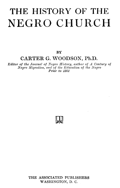 The importance of the church in the life of the Negro justifies the publication of this brief account of the development of the institution. For many years the various denominations have been writing treatises bearing on their own particular work, but hitherto there has been no effort to study the achievements of all of these groups as parts of the same institution and to show the evolution of it from the earliest period to the present time. This is the objective of this volume.