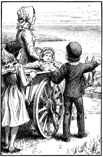 I was standing at our cottage door that afternoon—a beautiful summer afternoon it was, early in June. I was looking idly enough across the common, for our cottage stood—stands still, perhaps—I have not been there for many a year—just at the edge of Brayling Common, where it skirts the pine-woods, when I saw them pass. Quite a little troop they looked, though they were scarcely near enough for me to see them plainly. There was the donkey, old Larkins's donkey, which they had hired for the time, with a tot of a girl riding on it, the page-boy leading it, and a nursemaid walking on one side, and on the other an older little lady—somewhere about ten years old she looked, though she was really only eight. What an air she had, to be sure! What a grand way[Pg 3] of holding herself and stepping along like a little princess, for all that she and her sisters were dressed as simple as simple. Pink cotton frocks, if I remember right, a bit longer in the skirts than our young ladies wear them now, and nice white cotton stockings,—it was long before black silk ones were the fashion for children,—and ankle-strap shoes, and white sun-bonnets, made with casers and cords, nice and shady for the complexions, though you really had to be close to before you could see a child's face inside of them. And some way behind, another little lady, a good bit shorter than Miss Bess—I meant to give all their names in order later on, but it seems strange-like not to say it—and looking quite three years younger, though there was really not two between them. And alongside of her a boy, thin and pale and darkish-haired—that, I could see, as he had no sun-bonnet of course, only a cap of some kind. He too was a good bit taller than Miss ——, the middle young lady I mean, though short for his age, which was eleven past. They were walking together, these two—they were mostly always together, and I saw that the boy was a little lame, just a touch, but enough to take the spring out of his step that one likes to see in a young thing. And though I couldn't[Pg 4] see her face, only some long fair curls, long enough to come below the cape of her bonnet, a feeling came over me that the child beside him was walking slow, keeping back as it were, on purpose to bear him company. There was something gentle and pitying-like in her little figure, in the way she went closer to the boy and took his hand when the nurse turned round and called back something—I couldn't hear the words but I fancied the tone was sharp—to the two children behind, which made them press forward a little. The other young lady turned as they came nearer and said something with a sort of toss-up of her proud little head to the nurse. And then I saw that she held out her hand to her younger sister, who kept hold all the same of the boy's hand on the other side. And that was how they were walking when they went in among the trees and were lost to my sight.