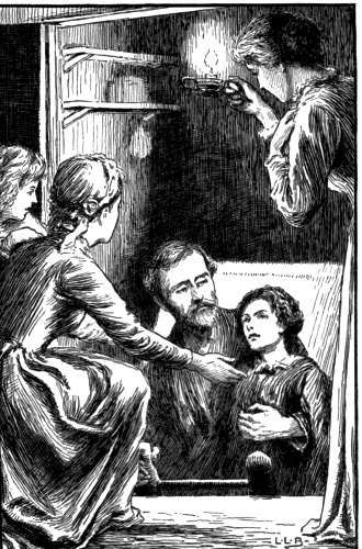Sad as I was, and though I could scarcely have believed it of myself, I had scarcely laid my head down before I too, like the children, fell fast asleep. I was dreaming, a strange confused dream, which I never was able to remember clearly; but it was something about searching in the smugglers' caves for Master Francis, followed by an old man, who I somehow fancied was the miser baronet, Sir David. His hair was snow white, and there was a confusion in my mind of thinking it like Miss Lally's wool. Anyhow, I had got the idea of whiteness in my head, so that, when something woke me—afterwards I knew it was the sound of my own name—and I opened my eyes to see by the glimmer of the night-light what seemed at first a shining figure by my bed-side, I did[Pg 173] not feel surprised. And the first words I said were 'white as wool.'