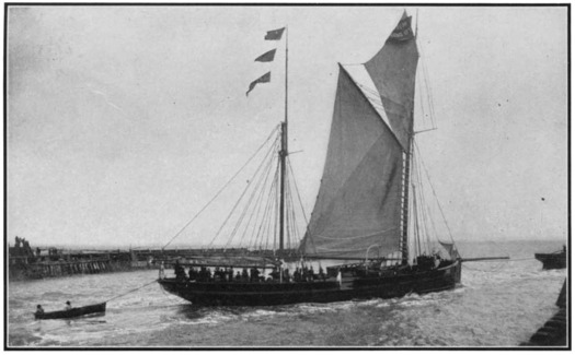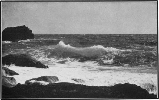 The schooner All’s Well (which is a fictitious name) was helpless in the wind and sea and whirling snow of a great blizzard. At dusk she was driven inshore—no man knew where. Strange cliffs loomed in the snow ahead; breakers—they were within stone’s throw—flashed and thundered to port and starboard; the ship was driving swiftly into the surf. When she was fairly upon the rocks, Skipper John, then a hand aboard (it was he who told me the story), ran below and tumbled into his bunk, believing it to be the better place to drown in.
