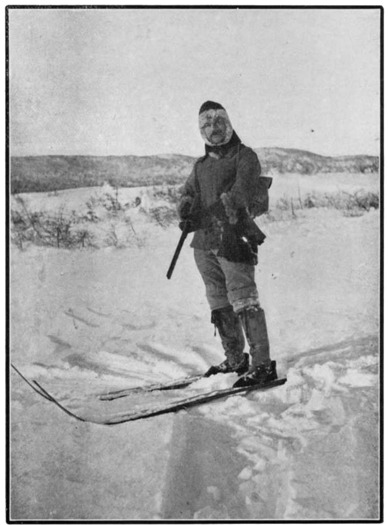 “One of my dogs fell through the ice,” says he. “There was a biting nor’west wind blowing, and the temperature was ten degrees below zero. When we were one mile from the land, I got off to run and try the ice. It suddenly gave way, and in I fell. It did not take me long to get out, for I have had some little experience, and the best advice sounds odd: it is ‘keep cool.’ But the nearest house being at least ten miles, it meant, then, almost one’s life to have no dry clothing. Fortunately, I had. The driver at once galloped the dogs back to the woods we had left, and I had as hard a mile’s running as ever I had; for my clothing was growing to resemble the armour of an ancient knight more and more, every yard, and though in my youth I was accustomed to break the ice to bathe if necessary, I never tried running a race in a coat of mail. By the time I arrived at the trees and got out of the wind, my driver had a rubber poncho spread on the snow under a snug spruce thicket; and I was soon as dry and a great deal warmer than before.”