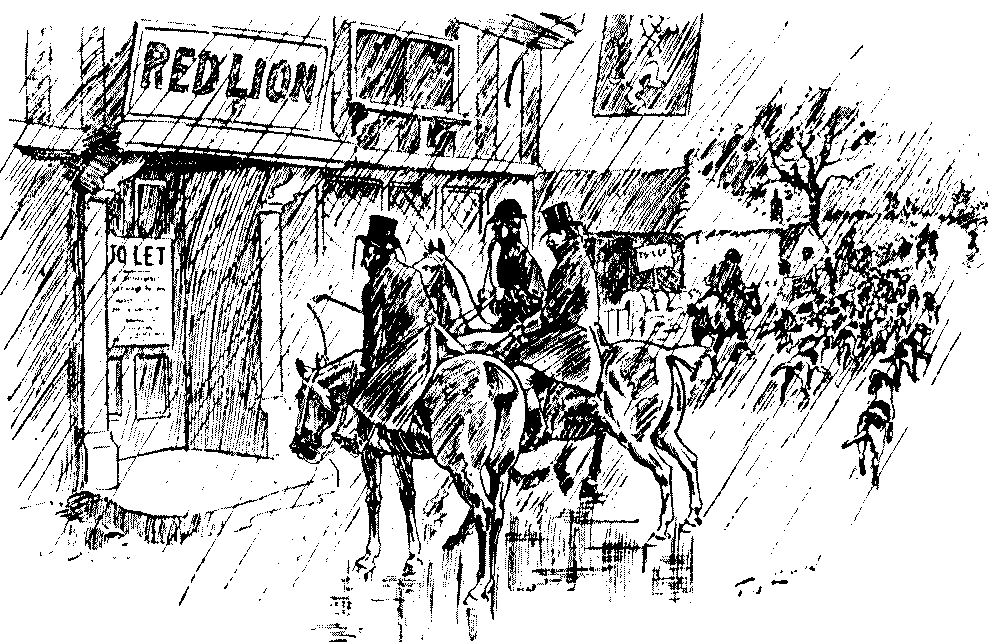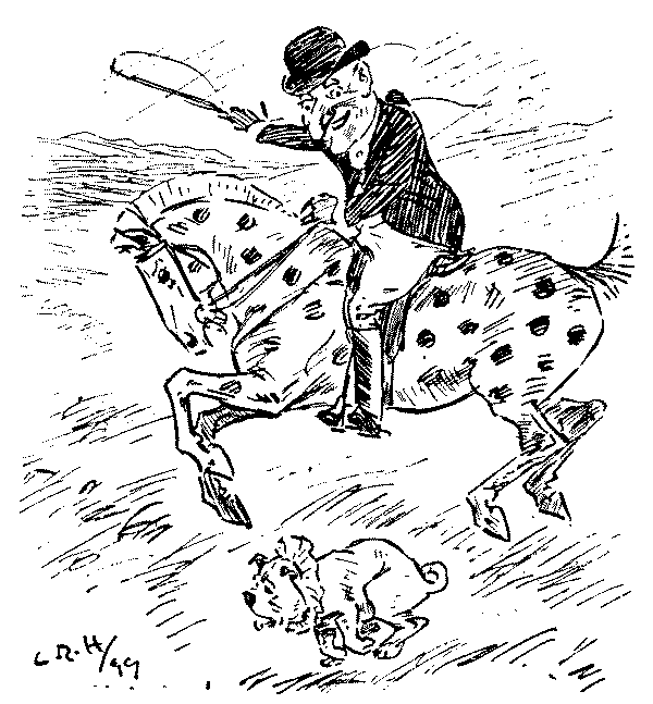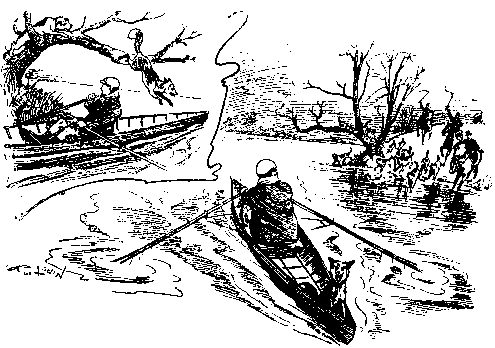 Little Binks, who has been trying to keep out of people's way all day, thinks he can quite understand the feelings of the hunted fox.