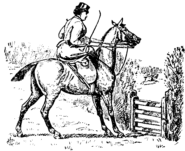 "Now, if I jump it, I shall certainly fall off; and if I dismount to open it, I shall never get on again."