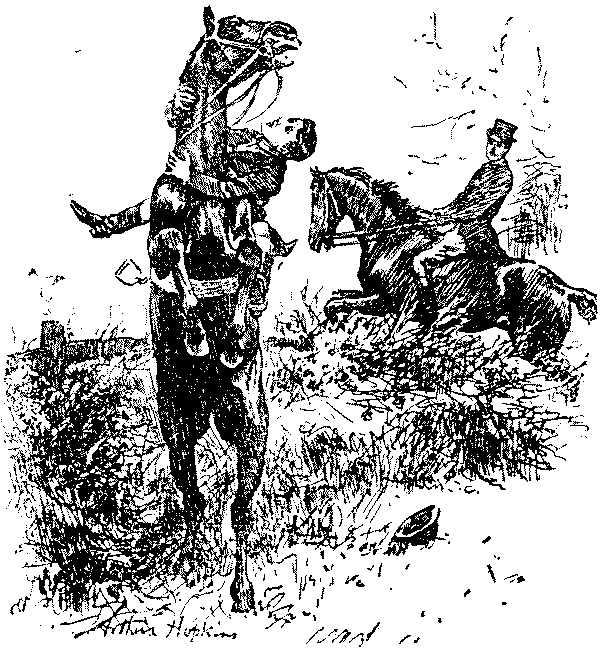 "Oh! all right, I know what you are going to say: that you're not much good on a horse"—(nothing of the sort! I was not going to say any such thing, confound the man!) "Of course, I know all that, and that you're not much of a rider; but I can't help myself now. It's too late to get a decent horseman, so I shall have to make shift with you."
