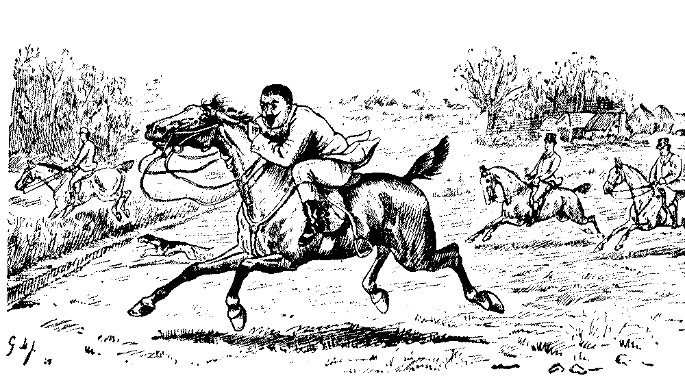 I smiled in pitying and superior manner. "Think so, my dear Sproozer? My horse can't run, worse luck, but I only wish I were going to have the gallop over it."
