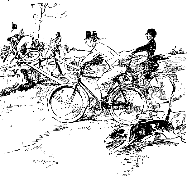 [Mr. Pat O'Brien, M.P., was first in at the death on one occasion with the Meath Hounds on his bicycle, and was presented with the brush.]