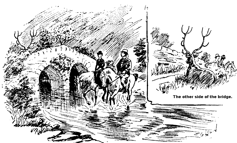 Lady (having just cannoned Stranger into brook.) "Oh, I'm so sorry I bumped you! Would you mind going in again for my hat?"
