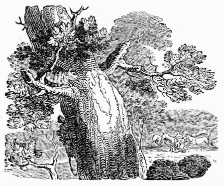 A country Fellow came one day into the Wood, and looked about him with some concern; upon which the Trees, with a curiosity natural to some other creatures, asked him what he wanted.—He replied—'That he only wanted a piece of wood to make a handle to his hatchet.' Since that was all, it was voted unanimously, that he should have a piece of good, sound, tough ash. But he had no sooner received and fitted it for his purpose, than he began to lay about him unmercifully, and to hack and hew without distinction, felling the noblest trees in all the forest. Then the Oak is said to have spoke thus to the Beech in a low whisper,—'Brother, we must take it for our pains.'