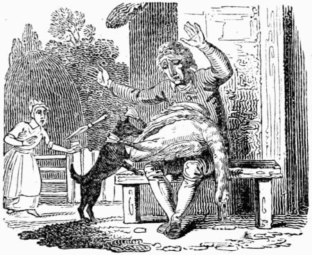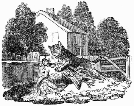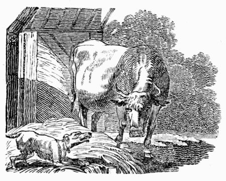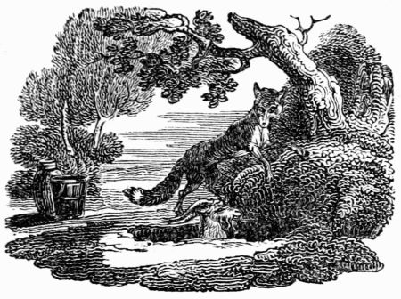 A lean, hungry, half-starved Wolf, happened, one moonshiny night, to meet with a jolly, plump, well-fed mastiff; and, after the first compliments were passed, says the Wolf—'You look extremely well; I protest, I think, I never saw a more graceful comely person. But how comes it about, I beseech you, that you should live so much better than I? I may say, without vanity, that I venture fifty times more than you do; and yet I am almost ready to perish with hunger.'—The Dog answered very bluntly—'Why you may live as well, if you will do the same for it that I do.'—'Indeed! What is that?' says he.—'Why,' says the Dog, 'only to guard the house a nights, and keep it from thieves.'—'With[230] all my heart,' replies the Wolf, 'for at present I have but a sorry time of it; and, I think, to change my hard lodging in the woods, where I endure rain, frost, and snow, for a warm roof over my head, and a belly full of good victuals, will be no bad bargain.'—'True,' says the Dog; 'therefore you have nothing more to do but to follow me.' Now, as they were jogging on together, the Wolf spied a crease in the Dog's neck, and, having a strange curiosity, could not forbear asking him what it meant.—'Pugh! nothing,' says the Dog. 'Nay, but pray,'—says the Wolf. 'Why,' says the Dog, 'if you must know, I am tied up in the day-time, because I am a little fierce, for fear I should bite people, and am only let loose a nights. But this is done with design to make me sleep a days, more than any thing else, and that I may watch the better in the night-time; for, as soon as ever the twilight appears, out I am turned, and may go where I please. Then my master brings me plates of bones from the table with his own hands, and whatever scraps are left by any of the family, all fall to my share; for you must know I am a favourite with every body. So you see how you are to live.—Come, come along; what is the matter with you?'—'No,' replied the Wolf, 'I beg your pardon; keep your happiness all to yourself. Liberty is the word with me; and I would not be a king upon the terms you mention.'
