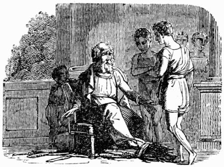 A poor feeble old man who had crawled out into a neighbouring wood to gather a few sticks, had made up his bundle, and, laying it over his shoulders was trudging homeward with it; but, what with age, and the length of the way, and the weight of his burden, he grew so faint and weak that he sunk under it: and, as he sat on the ground, called upon Death to come, once for all, and ease him of his troubles. Death no sooner heard him, but he came and demanded of him what he wanted. The poor old creature, who little thought Death had been so near, and frighted almost out of his senses with his terrible aspect, answered him trembling, that having by chance let his bundle of sticks fall, and being too infirm to get it up himself, he had made bold to call upon him to help him: that,[239] indeed, this was all he wanted at present; and that he hoped his worship was not offended with him for the liberty he had taken in so doing.
