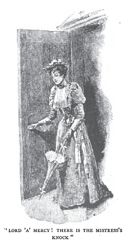 Three steps carried me across the lobby to a curtained doorway by which the servant was waiting. I saw that the "shakes" were upon him again. His impatience was so ill concealed that I was not surprised--though I was taken aback--when he dropped the mask altogether, and as I passed him--it being now too late for me to retreat undiscovered, if the room were occupied--laid a trembling hand upon my arm and thrust his face close to mine. "Ask how he is! Say anything," he whispered, trembling, "no matter what, sir! Only, for the love of Heaven, stay five minutes!"