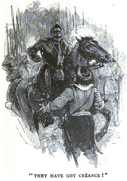 Suddenly the low murmur of voices was broken by a new sound, the hurried clang of hoofs, not departing but arriving. There was something in the noise which made the captain prick his ears, and secured for the messenger a speedy passage through the crowd. Even at the last the man did not spare his horse, but spurring to the captain's side, then and then only sprang to the ground. His face was pale, his eyes were bloodshot. His right arm was bound up in bloodstained cloths. With an oath of amazement, the captain recognized the officer whom he had left in charge of Créance and thundered out, "What is it?"