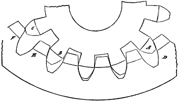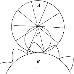 | Gear-Wheels. Hand applications of the rolling or generating circle to mark the tooth curves for a pair of wheels | 12 | ||