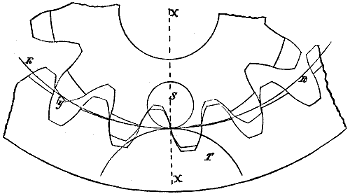 | Demonstration that by using two rolling circles each tooth has for a certain period two points of contact | 25 | ||